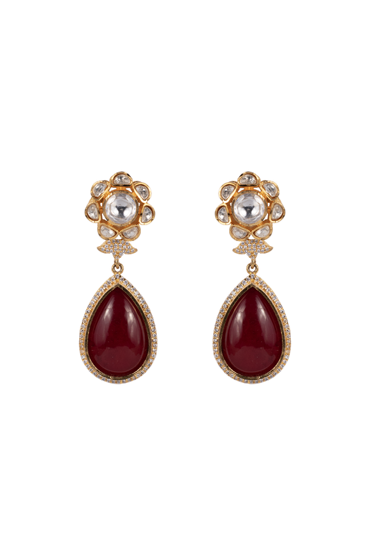Karishma Ruby Lotus Crown SP Polki Earrings