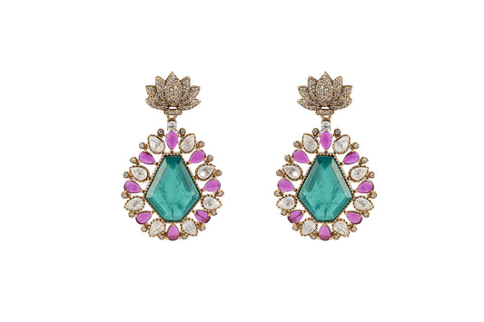 Maanavi Emerald Teardrop Multicolour SP Polki Earrings