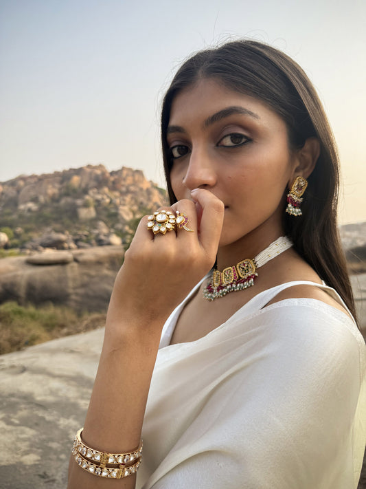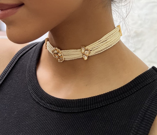 KHUSHNAZ SQUARE JADAU MOTI CHOKER SET WITH EARRINGS