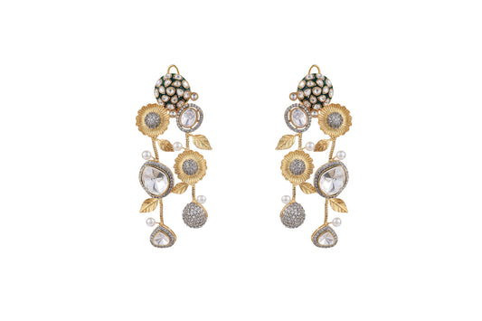 Nivedita Floral Vine Diamond SP Polki Earrings