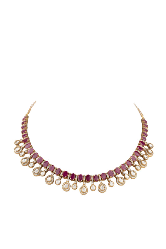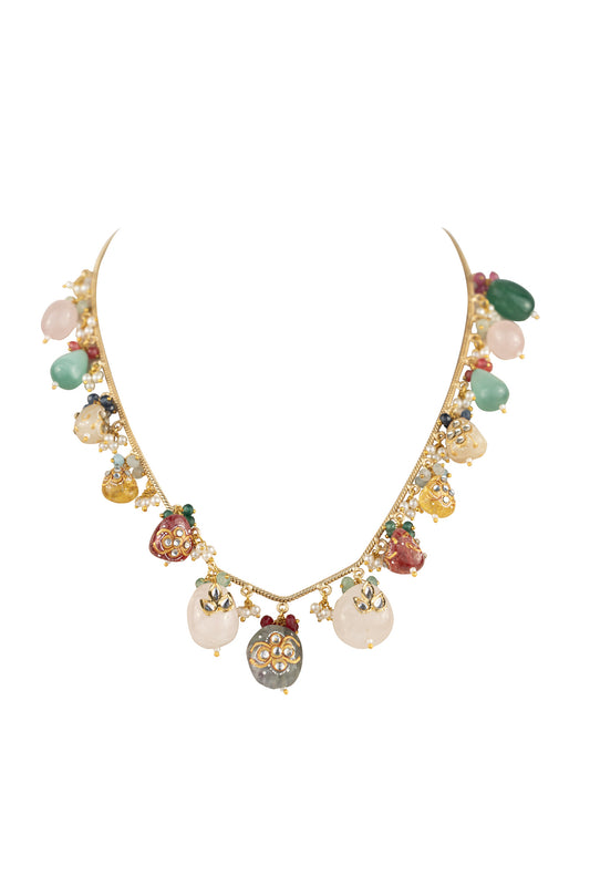 PRATIKSHA ROSE QAURTZ KUNDAN MULTICOLOURED STONES SP NECKLACE SET WITH EARRINGS