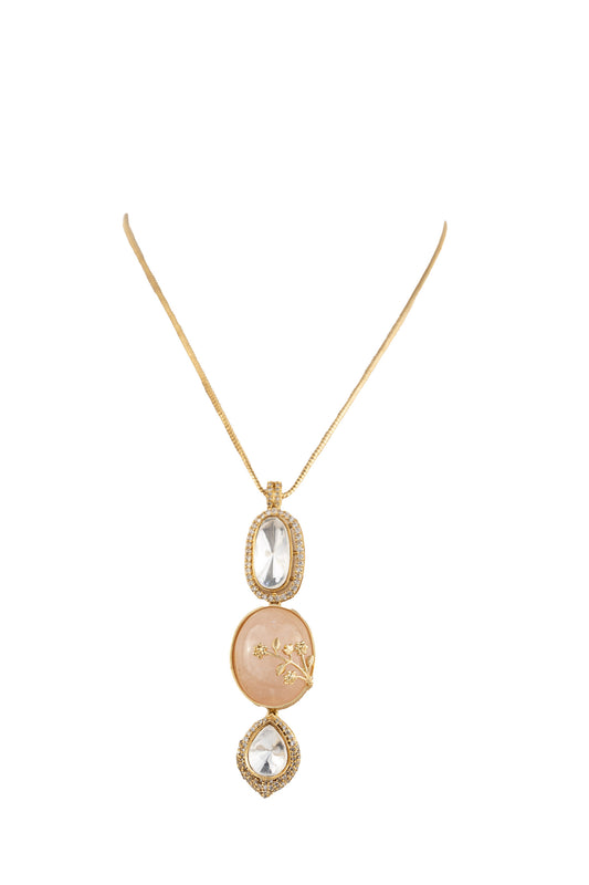 PANKTI THREE SHAPED POLKI DROP PENDANT WITH CHAIN WITH EARRINGS