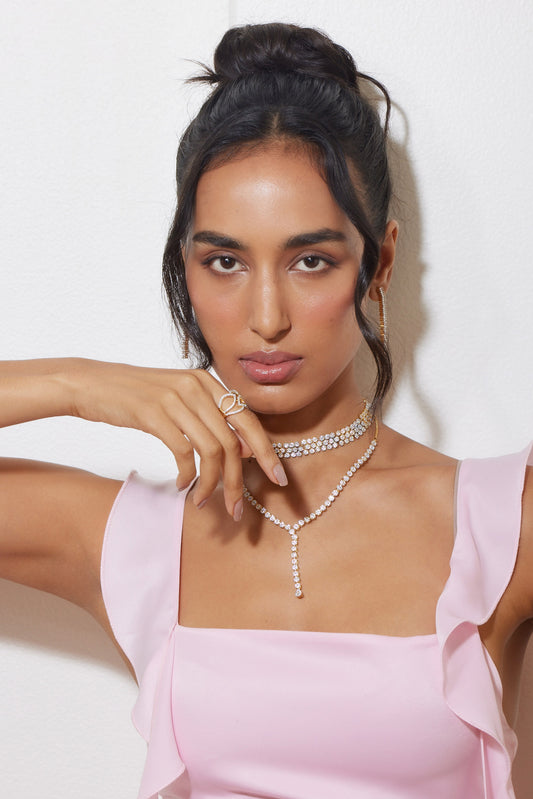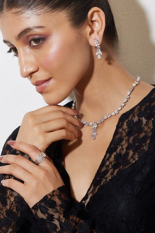 Pavithra Rose Quartz Pendant SP Necklace Set with Earrings