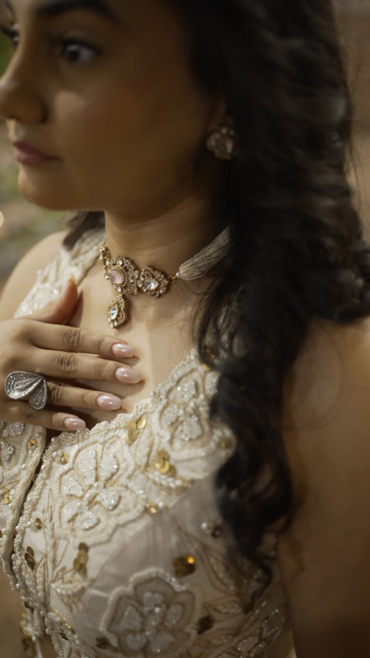 PRIYAL ROUND JADAU MOTI CHOKER SET WITH EARRINGS