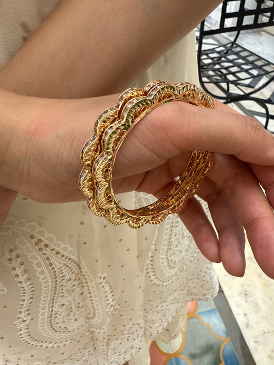 Limited EditionSCALLOPED EDGE BANGLES WITH GREEN DETAILING