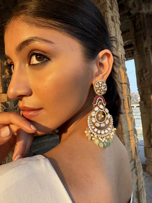 Lipika Chandelier Multicoloured Stones SP Polki Earrings
