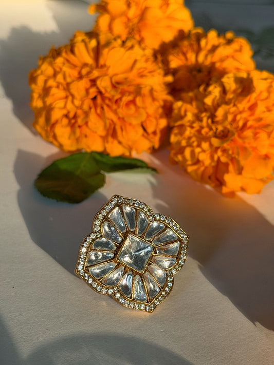 KHUSHBOO POLKI ENAMEL RING WITH PEARL DROP