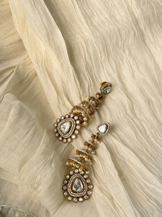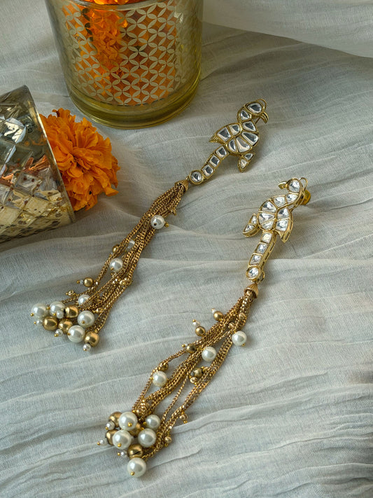 SALONI GOLDEN CRESCENT MOTI CHAIN EARRINGS