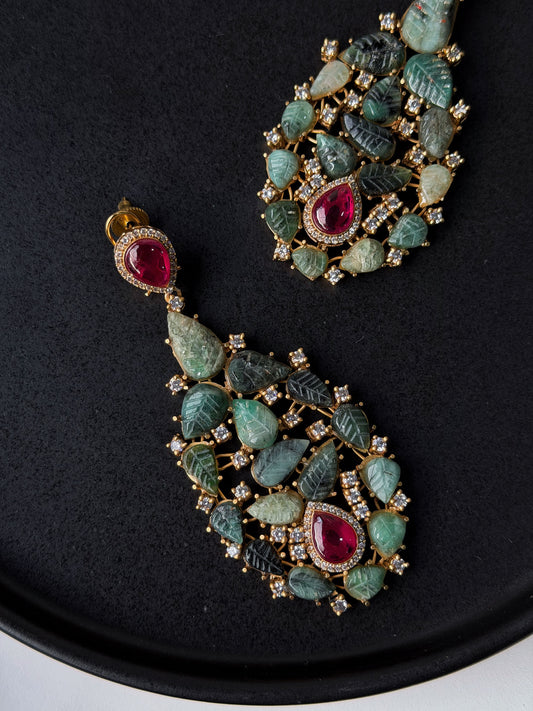 NALINI EMERALD RUBY TEARDROP MULTICOLOURED STONES SP POLKI EARRINGS