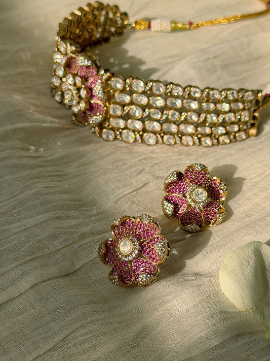 YASHVI RUBY BEAD FLORAL CHOKER SET