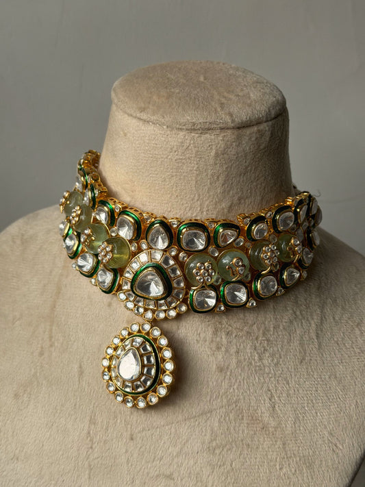 LEELA ROUND JADAU MOTI CHOKER SET WITH EARRINGS