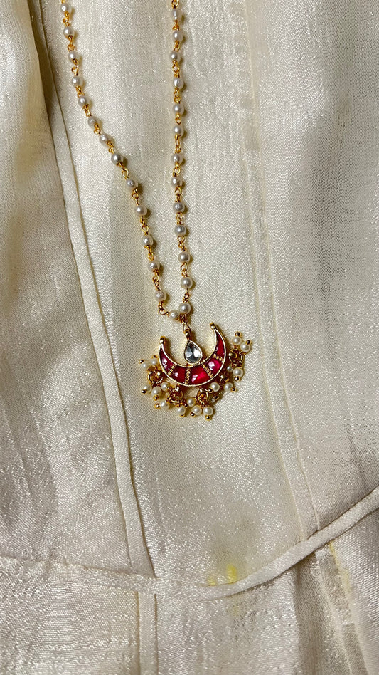 CHANDINI HALF MOON POLKI WITH SEMI-PRECIOUS STONE WITH BASRA MOTI