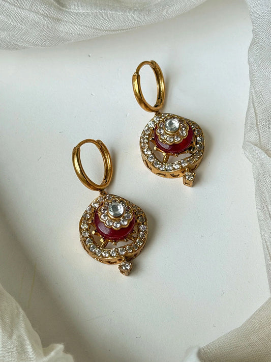 Gaurangi Mayna Red Shaped Polki With Semi-precious Stone With Basra Moti
