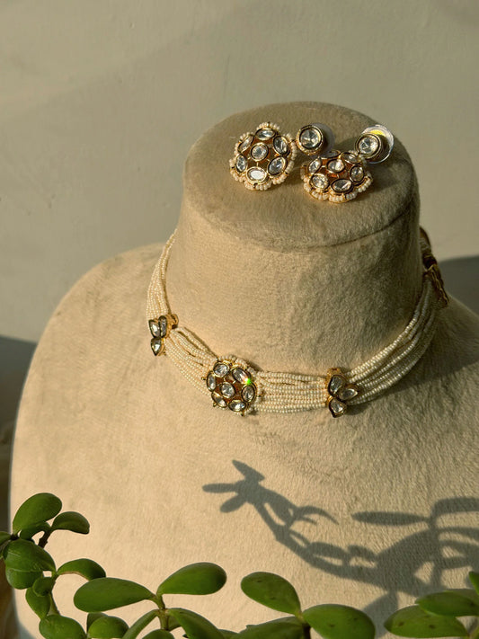 Tanisha Choker With Semi Precious Green Stones And Faux Polki Necklace Set