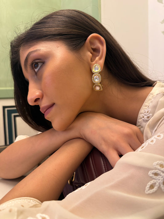 ROHINI ROSE SHAPED POLKI WITH SEMI-PRECIOUS STONE WITH BASRA MOTI