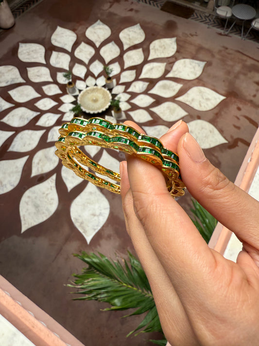 Limited EditionSCALLOPED EDGE BANGLES WITH GREEN DETAILING