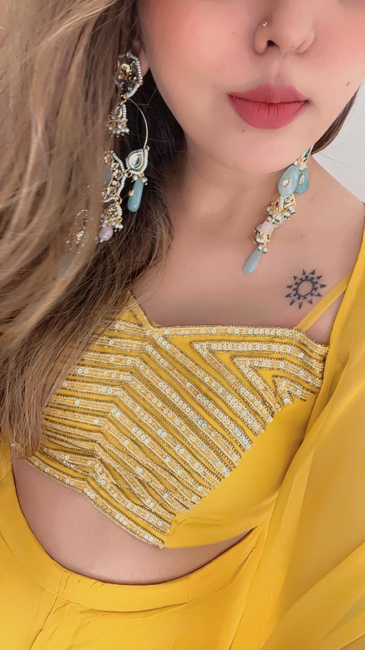 Lekisha Floral Emerald Green & White Polki Earrings bloom with the majesty of a royal garden, featuring magnificent emerald centers surrounded by a constellation of polki diamonds and pearl accents. The chandelier silhouette creates dramatic movement, while the delicate droplets seem to capture morning dew in perpetuity. These statement earrings honor centuries of Indian jewellery traditions while maintaining a fresh, contemporary appeal that complements both traditional and modern ensembles. The perfect balance of colour, texture, and brilliance makes these earrings an unforgettable addition to any jewellery collection.